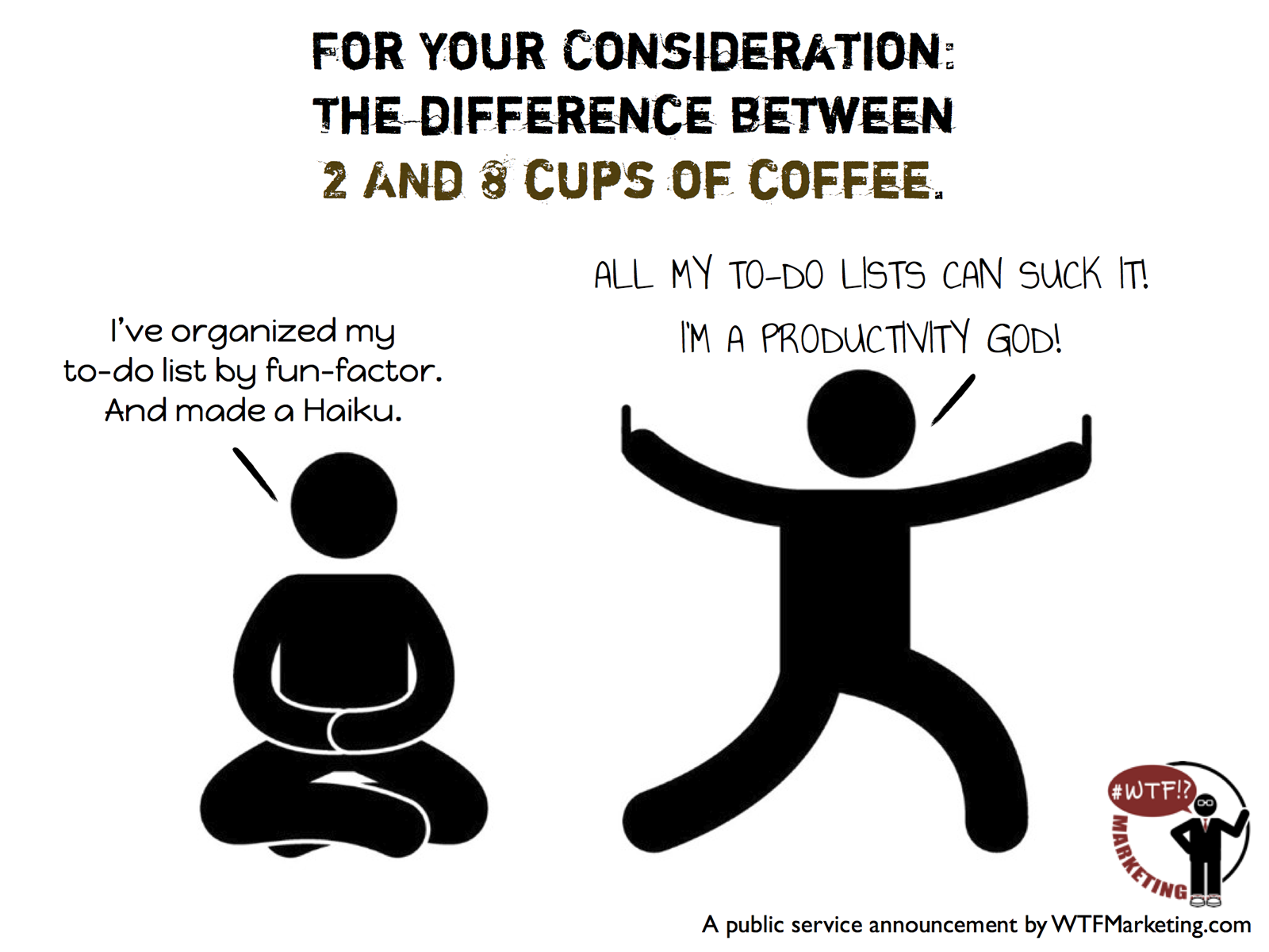 Given that WTF Marketing’s schtick is PSAs in stick-figure style and we do them for my giggles as much as for any business reason, I’m not overly concerned. In fact, while I was annoyed Andrew’s joke got more mileage, I mostly wanted to do this writeup to give him props for a nicely done viral post.